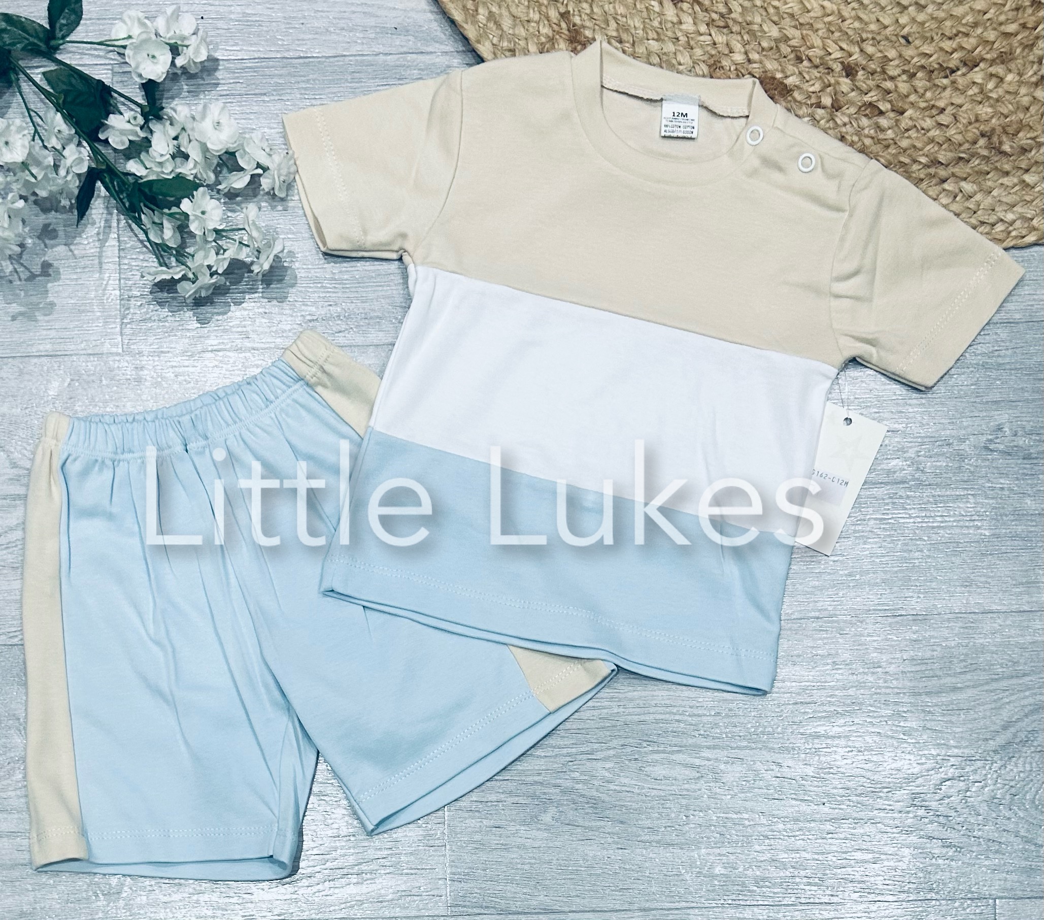Blue and Beige Striped Shorts Set