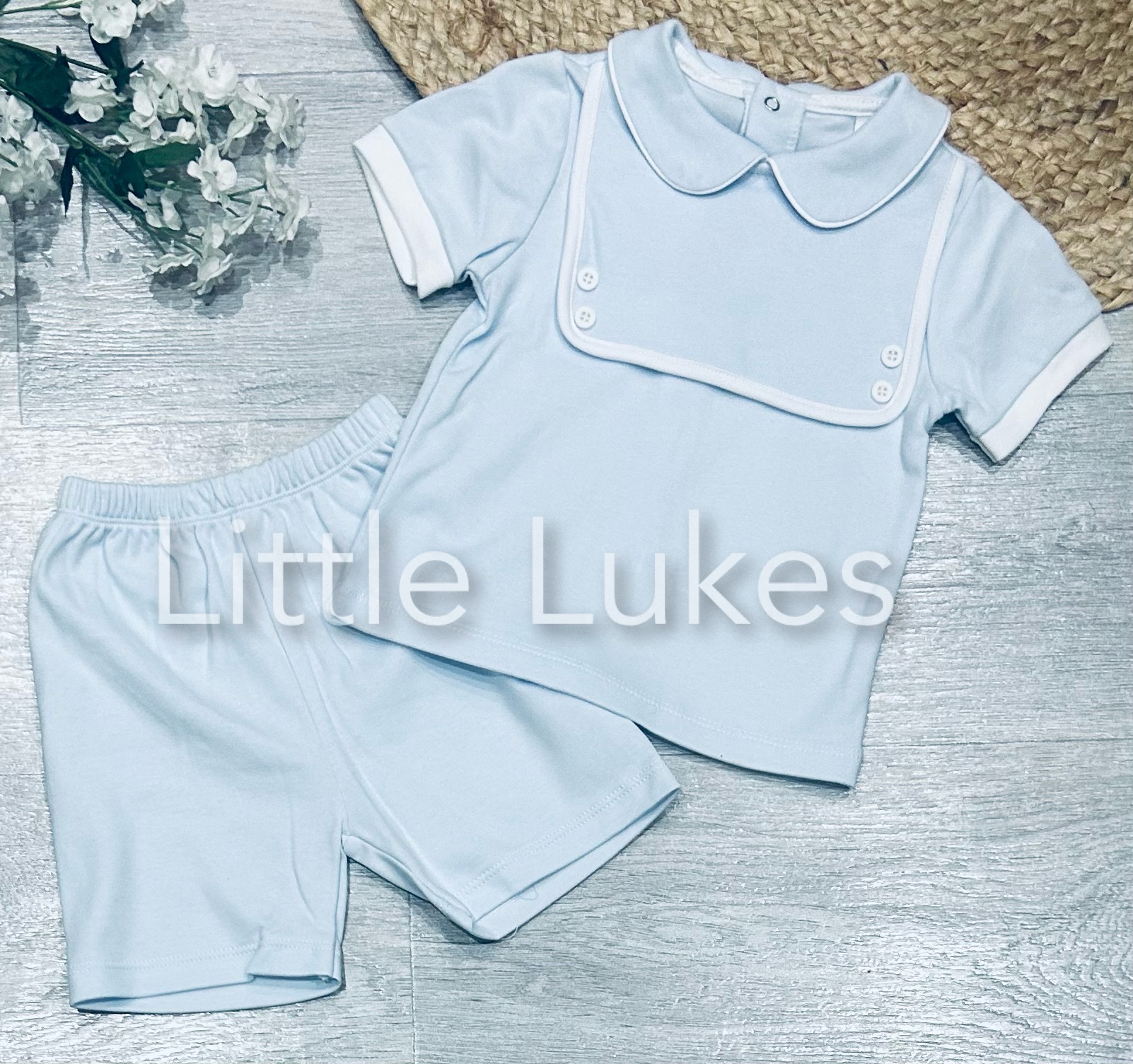 Blue Button Shorts Set