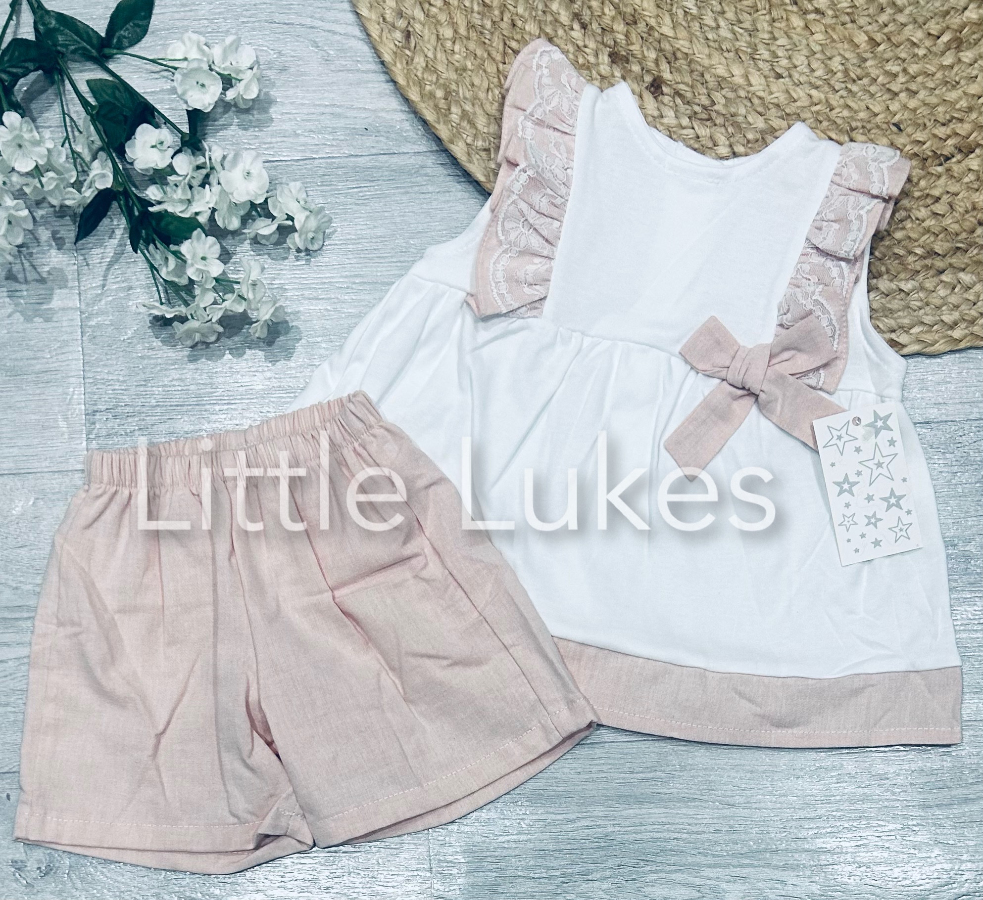 Dusty Pink Bow and Frill Shorts Set