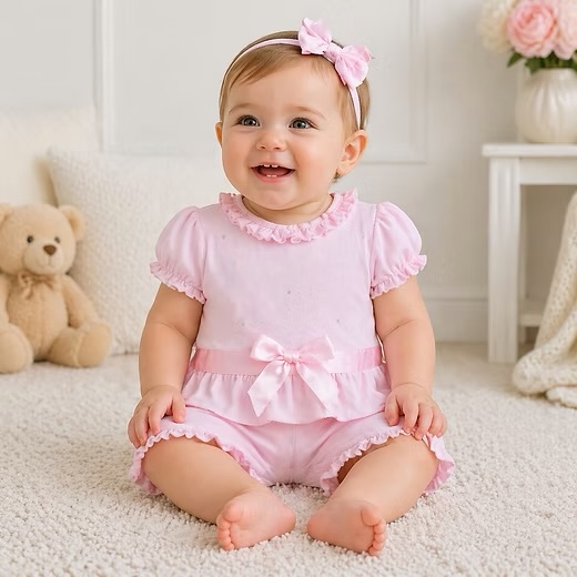Kleo Kids Pink Bow Frill Shorts Set