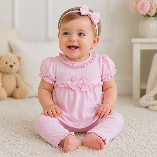 Dandelion Stars Velour All In One Pink (Tiny Baby)