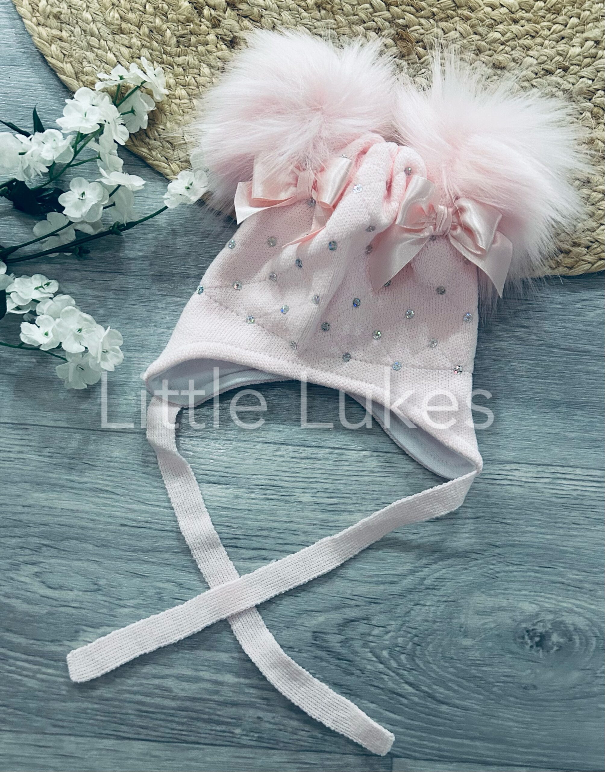 Kleo Kids Pink Sparkle Bow Double Pom Hat