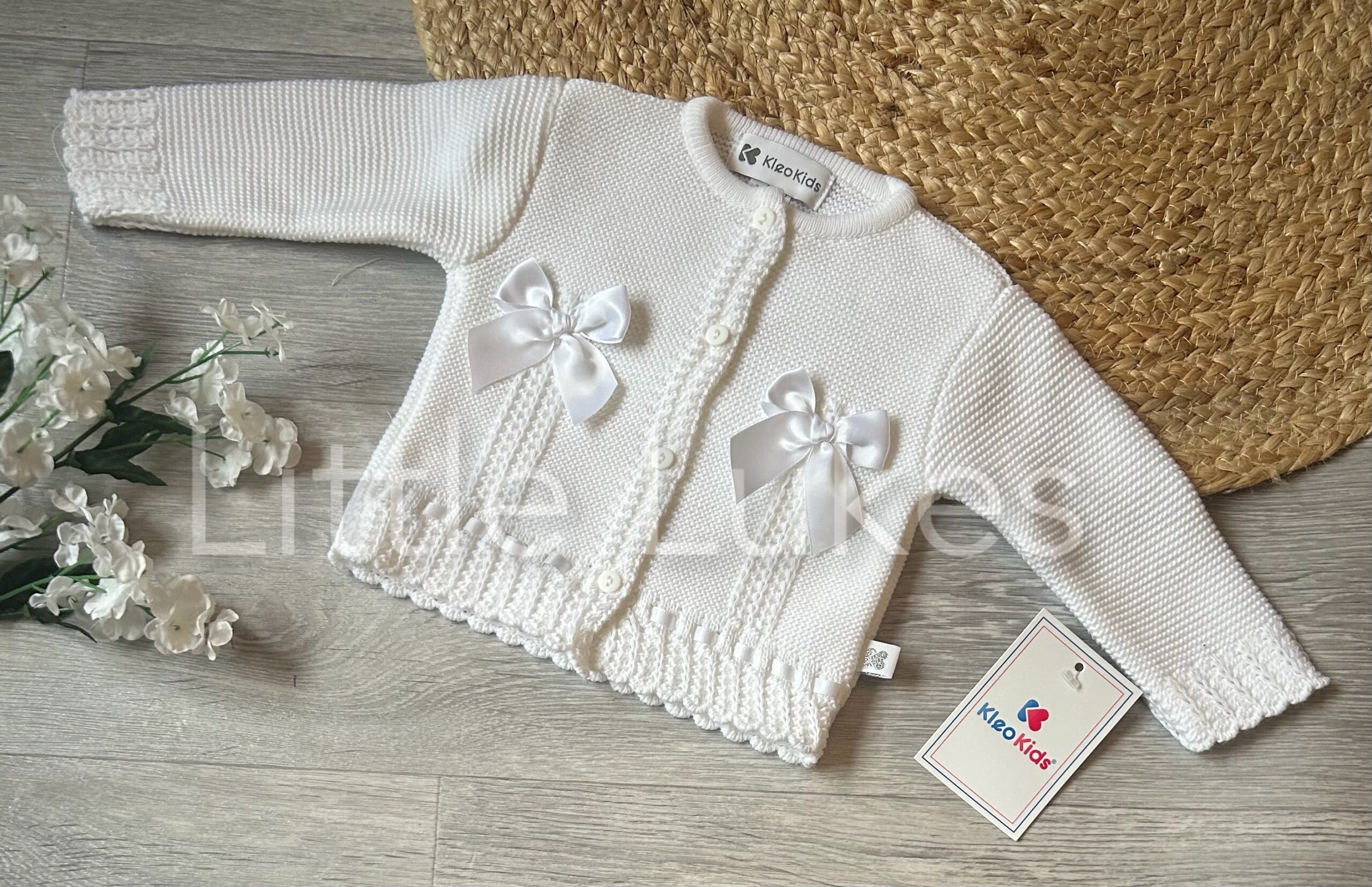 Kleo Kids White Braided Bow Cardigan quantity
