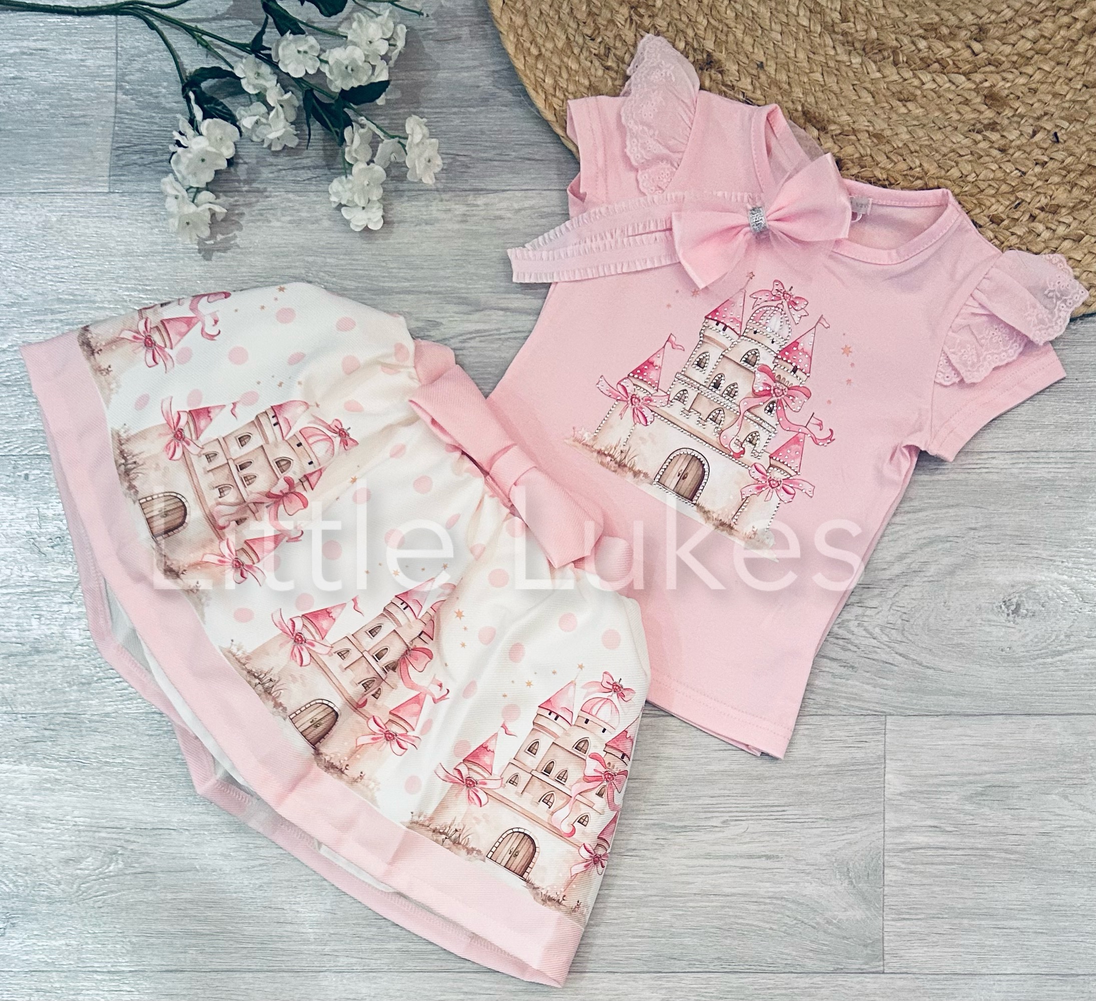 Pink and White Castle Skirt Set