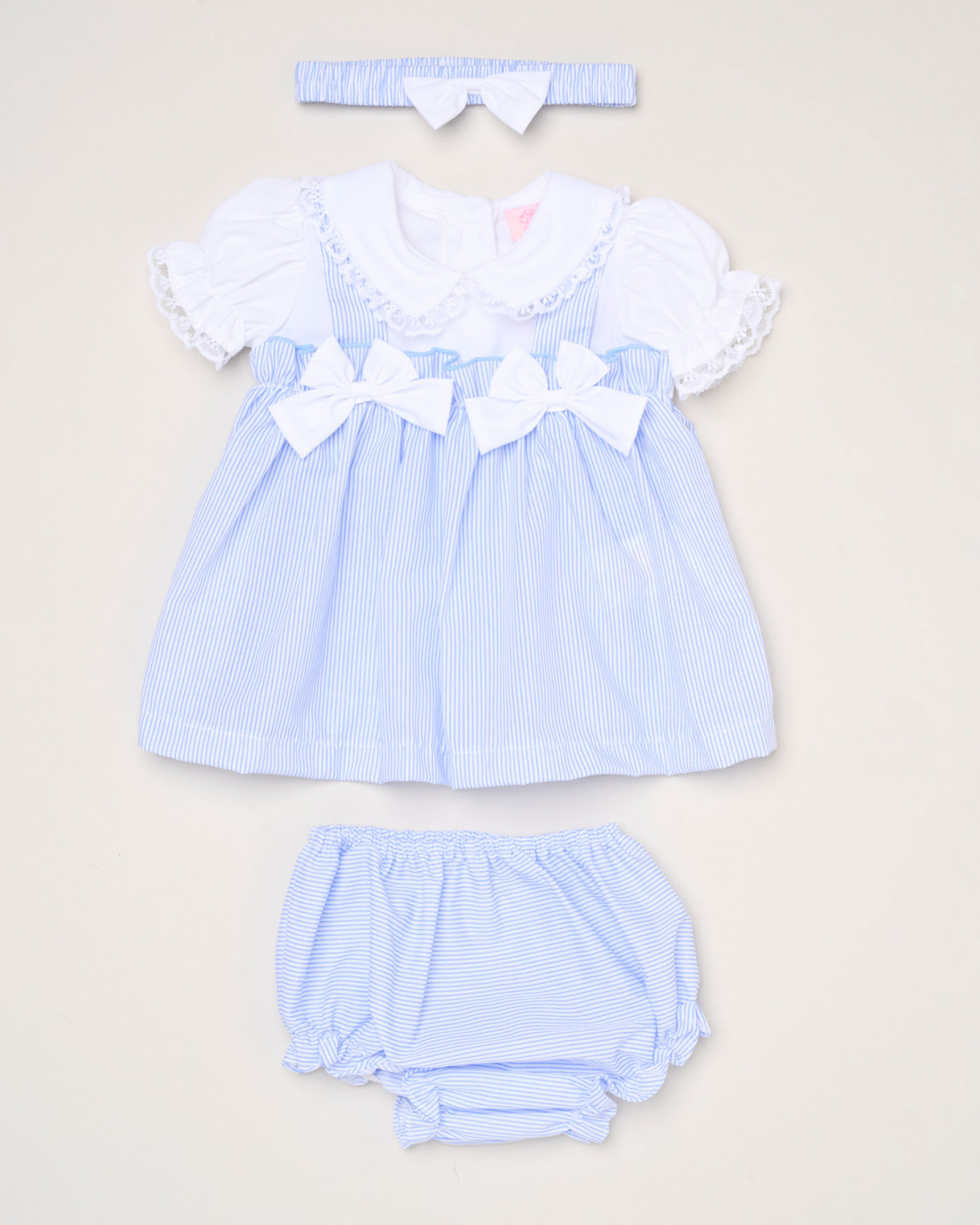 Sky Striped Double Bow Dress Set 12815 quantity