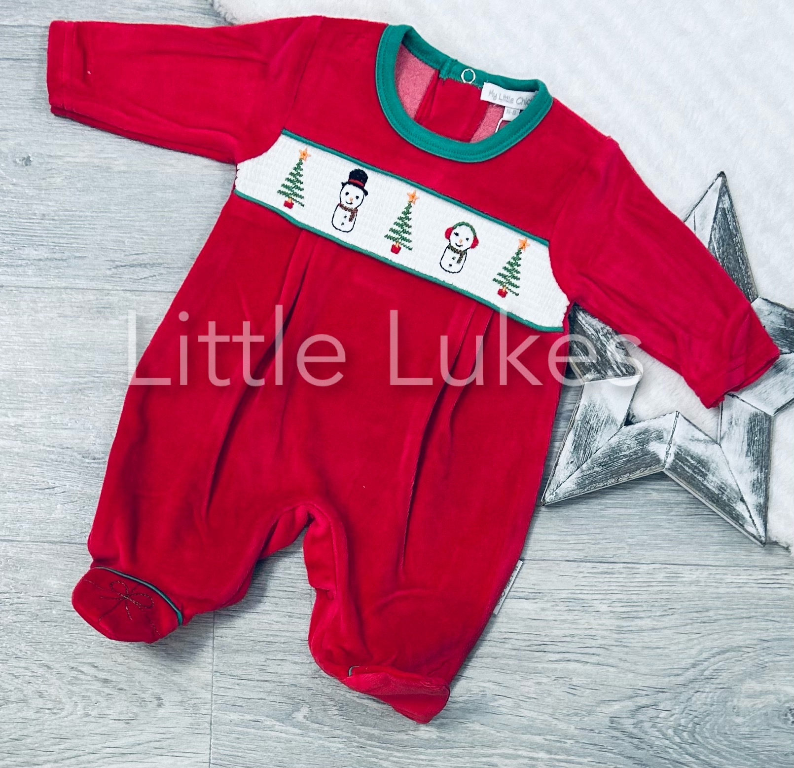 Smocked Snowman Christmas Velour All In One