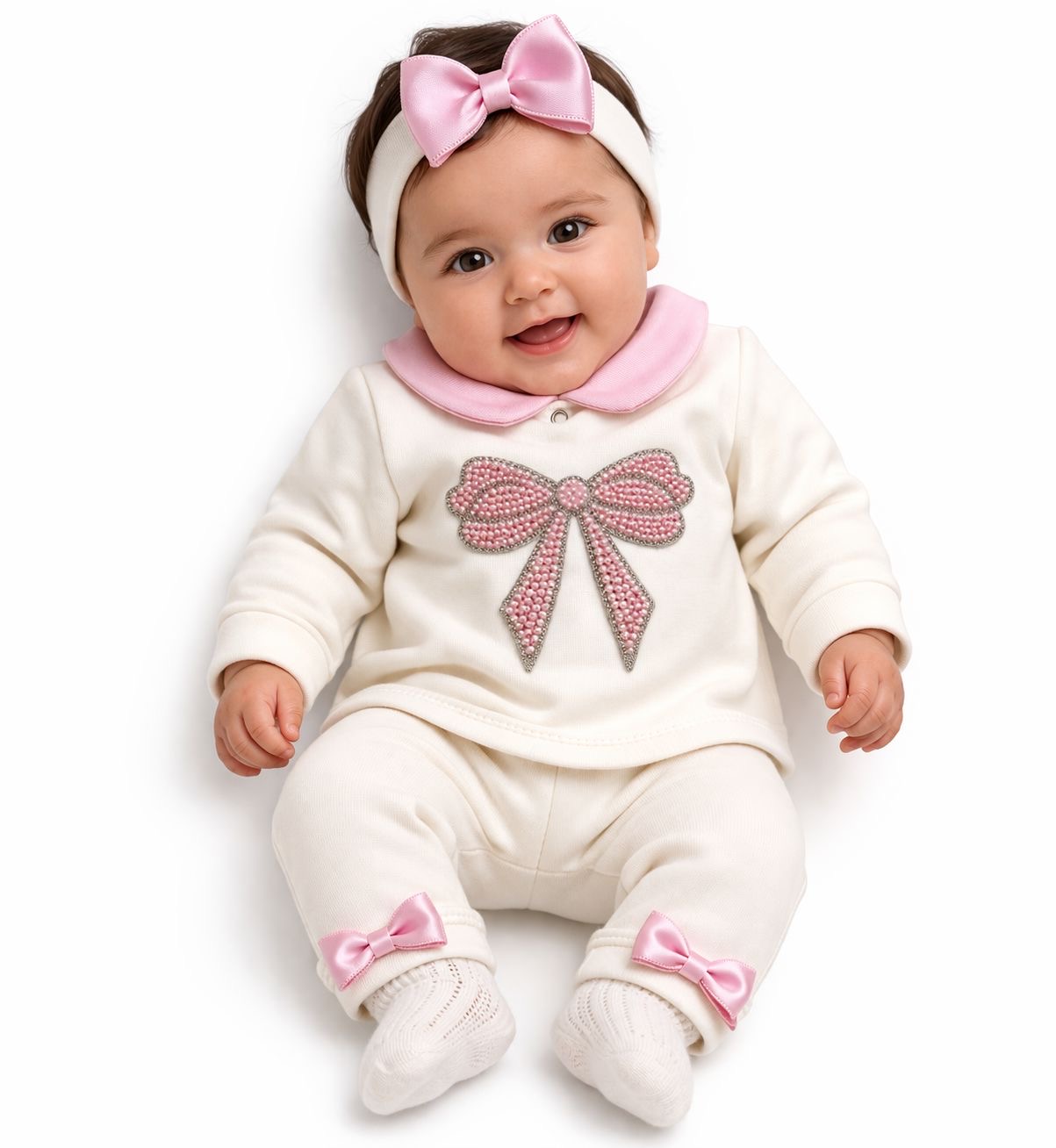 Visara Ivory and Pink Sparkle Bow Two Piece Set quantity