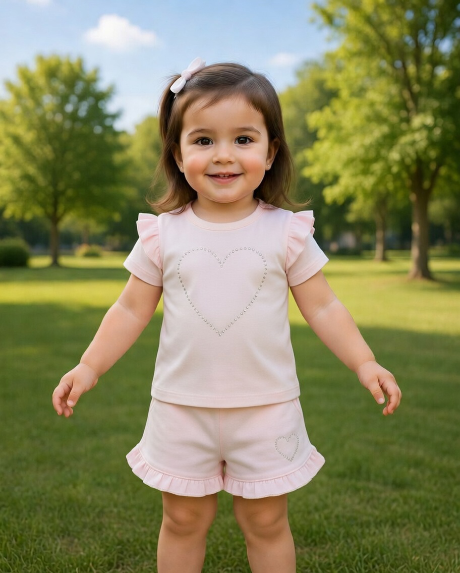 Visara Pink Diamanté Hearts Shorts Set