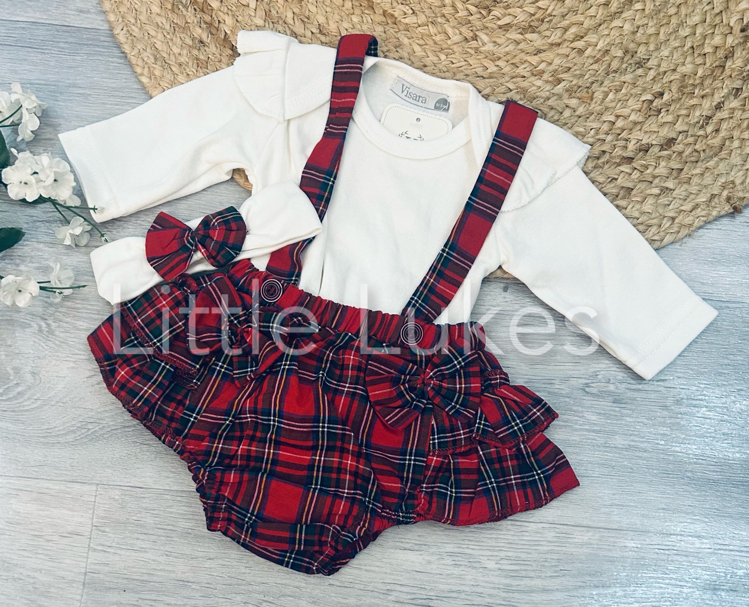 Visara Tartan Bow Jam Pants Dungaree Set